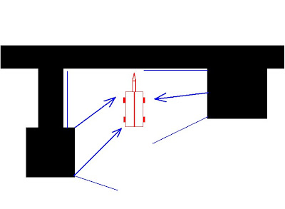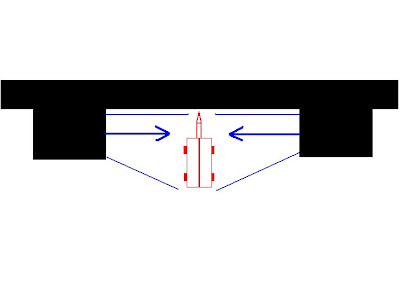 En el gráfico superior podemos hacernos una idea clara de la cuestión. Un ariete, en color rojo, es adosado a una cortina situada entre dos torres de flanqueo. Desde ellas, como se ve, se puede atacar desde ambos lados tanto a la máquina como a los que la manejaban. Las rayas azules muestran el ángulo de tiro de que disponían los defensores situados en los cubos.