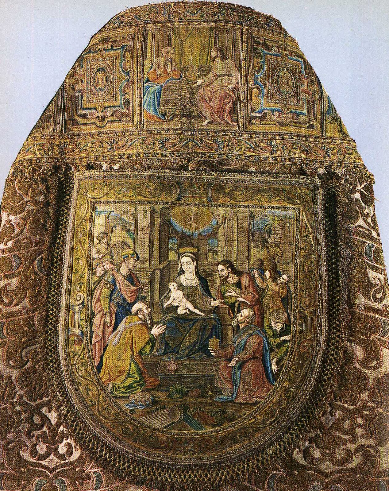 Colgados de los muros hay varios cuadros: Retrato de Inocencio III copia de Velásquez, dos floreros grandes y dos pequeños de Daniel Seghers y la Adoración de los pastores y Adoración de los Reyes, a la manera de los Veronés. En uno de los testeros, se exhibe un frontal de altar bordado, regalado por Alfonso XIII en 1.910, procedente del convento de las Leandras de Sevilla.
